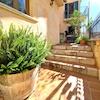 Der Innenhof bietet Platz zum Parken und führt zum Poolbereich, der mit Terrakotta-Elementen, Olivenbäumen, Lavendel und traditioneller mallorquinischer Gartenbepflanzung gestaltet ist.