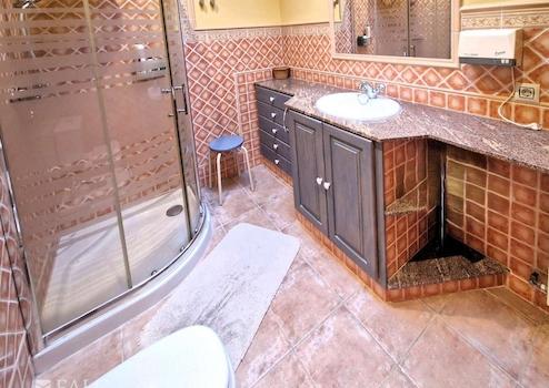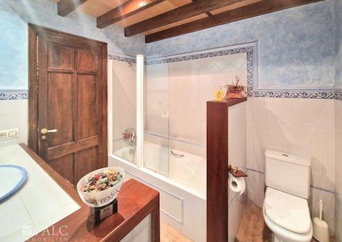 Die zwei Badezimmer sind in Naturtönen gehalten, mit traditionellen mallorquinischen Fliesen, modernen Sanitäranlagen und großräumigen Duschen (teils begehbar). Auch hier dominiert der mediterrane Charakter.