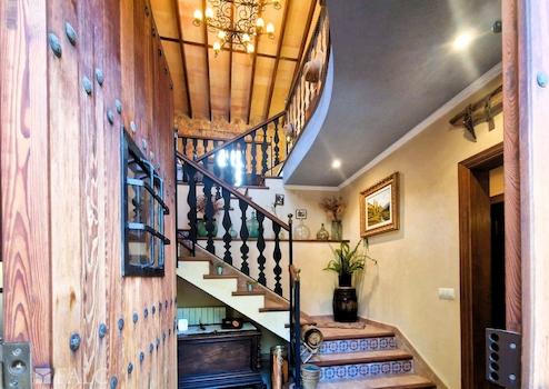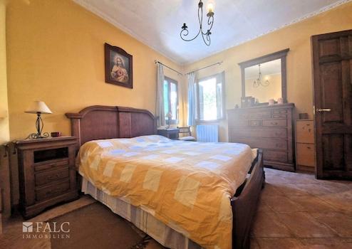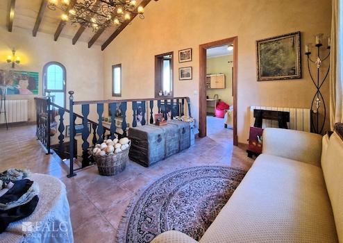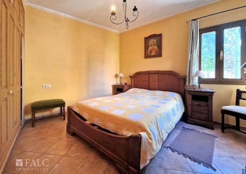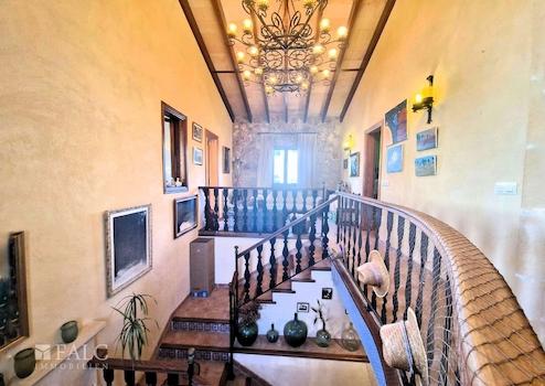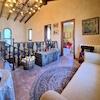 Die fünf Schlafzimmer sind außergewöhnlich großzügig gestaltet. Hohe Decken, sichtbare Holzbalken und sanfte mediterrane Wandfarben sorgen für eine ruhige, stilvolle Atmosphäre. Einige Zimmer bieten direkten Zugang zum Balkon oder zum Innenhof.