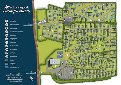 Ferienpark Campanula ist ein Ferienpark, der aus 2 Teilen besteht. Einem Bungalowpark mit großen geräumigen Bungalows, die sie selbst vermieten. Der andere Teil sind die Chalets. Diese Chalets werden sowohl vermietet als auch von den Eigentümern selbst genutzt.