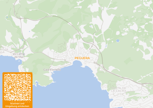 Die Wohnung liegt in einer ruhigen Wohnlage nahe des Boulevards von Paguera. Geschäfte, Supermärkte, Restaurants, Cafés, Eisdielen, Banken und medizinische Versorgung sind in wenigen Minuten zu Fuß erreichbar. Drei Strände – Palmira, Tora und La Romana – liegen je nach Abschnitt rund fünf bis zwölf Gehminuten entfernt. Cala Fornells befindet sich ebenfalls in kurzer Distanz und ist für seine Felsbuchten und das klare Wasser bekannt.