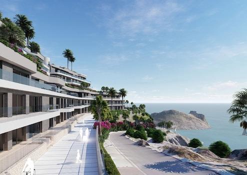 Wohnanlage bestehend aus 85 Objekten mit 1, 2 und 3 Schlafzimmern. Appartements, Penthäuser und Stadthäuser mit fantastischen Terrassen sowie Meerblick.