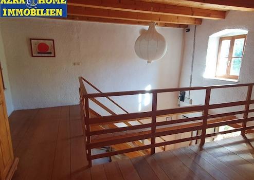 Im ersten Stock befindet sich eine Galerie mit Treppe zum Dachgeschoss und ein Schlafzimmer.