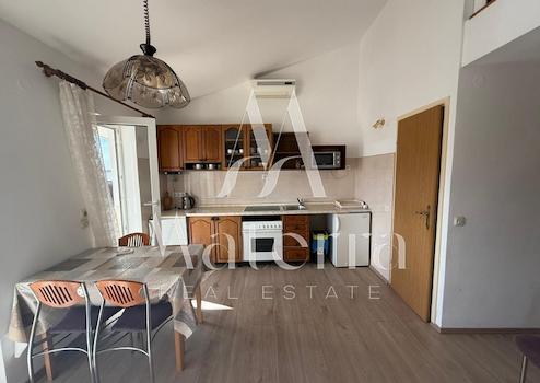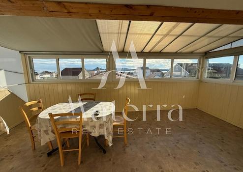 Die Wohnung besteht aus zwei Schlafzimmern, von denen jedes über ein eigenes Badezimmer und ein Hochbett verfügt. Wohnzimmer und alle Schlafzimmer sind klimatisiert, und die Küche ist funktional ausgestattet. Eine geschlossene Terrasse bietet zusätzlichen Komfort und lädt zum Entspannen und Genießen der Ruhe zu Hause ein. Die südliche Ausrichtung sorgt den ganzen Tag über für reichlich Tageslicht, und der offene Meerblick steigert den Wert der Immobilie zusätzlich.