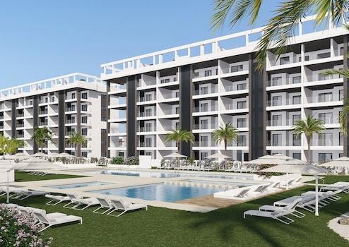 Eden Beach La Mata ist eine neue, luxuriöse und vollständig gesicherte Wohnanlage, die nur etwa 700 Meter vom Strand von La Mata entfernt liegt und von fast allen Apartments aus atemberaubende Meerblicke bietet. Die tropisch angelegten Gemeinschaftsgärten sind außergewöhnlich weitläufig gestaltet und beherbergen zwei große Pools, ein Kinderbecken, mehrere Fitnessbereiche mit Spa, eine eigene Kinderzone sowie Abstellmöglichkeiten für Fahrräder.