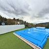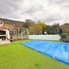 Der gepflegte Garten umfasst einen beheizten Pool, ideal zum Genießen in den wärmeren Monaten, sowie ein Nebengebäude mit Sommerküche, Aufenthaltsbereich und Grillplatz.