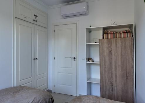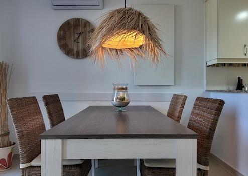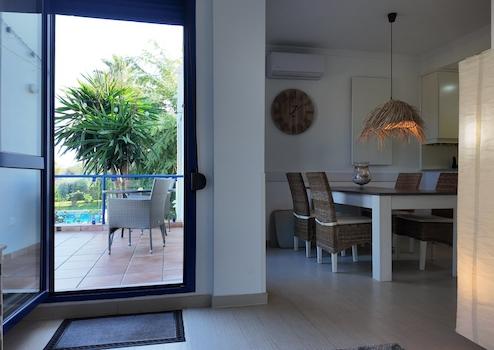 Mediterrane Einrichtung und moderner Komfort. Das Interieur strahlt Ruhe und Eleganz aus, mit weißen und beigen Farbtönen, warmen Erdtönen und natürlichen Materialien. Für das Raumklima sorgen moderne Infrarot-Paneele und Klimaanlagen, die sowohl kühlen als auch heizen - optimaler Komfort das ganze Jahr über.