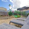 Der Garten lädt zum Entspannen und Sonnen ein und bietet eine Außendusche sowie ausreichend Platz für einen Aufstellpool.