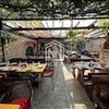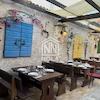 Auf der anderen Seite des Gebäudes befindet sich ein wunderschön gestalteter Innenhof, der als große, offene Terrasse des Restaurants dient. Es verfügt über eine Außenbar, eine Showküche und zwei Pizzaöfen.