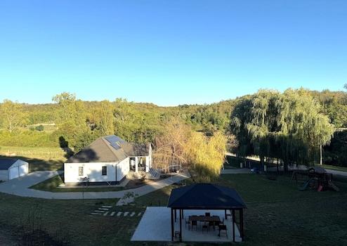 Telek: Az összesen 7605 m²-es, öt helyrajzi számon fekvő, tágas, rendezett telken dupla beállásos garázs, egy fedett, nagyméretű filagória, valamint két ásott kút is helyet kapott. A kertben kb. 40 gyümölcsfa és szőlő található, az egész terület körbekerített, így teljesen privát, biztonságos környezetet nyújt.