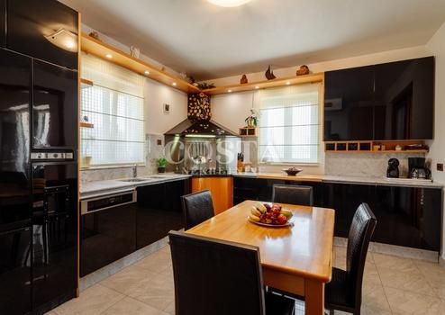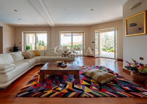 In Kožino bei Zadar steht eine luxuriöse Villa mit Pool zum Verkauf. Die Villa mit einer Gesamtfläche von 650 m² befindet sich auf einem großzügigen Grundstück von 1451 m². Sie besteht aus Untergeschoss, Erdgeschoss und Obergeschoss. Im Erdgeschoss befinden sich Wohnzimmer, Küche und Esszimmer. Die Villa verfügt über sechs Schlafzimmer und fünf Badezimmer, die sich auf Erdgeschoss und Obergeschoss verteilen. Im Obergeschoss befinden sich ein weiteres Wohnzimmer, eine Bibliothek und eine Terrasse mit Meerblick. Im Untergeschoss befinden sich ein Fitnessraum und eine Waschküche. Der großzügige Innenhof der Villa bietet einen angelegten Garten, einen Pool, eine Sonnenterrasse und eine Garage mit zwei Stellplätzen.