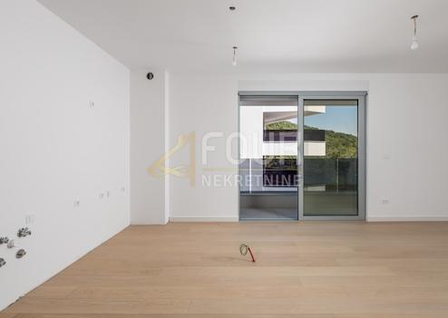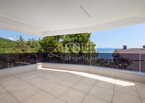 Zum Verkauf steht eine Wohnung im Erdgeschoss eines modernen und hochwertigen Neubaus in Opatija, an einer äußerst attraktiven Lage mit offenem Blick auf das Meer. Das Gebäude, erbaut im Jahr 2024, besteht aus zwölf Wohnungen und einem luxuriösen Penthouse, das mit hochwertigen Materialien und einer hohen Ausführungsqualität realisiert wurde. Die Endarbeiten im Innenraum, der Garage und im Garten werden bald abgeschlossen sein.