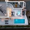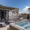 Im Obergeschoss befinden sich drei helle Schlafzimmer, jeweils mit eigenem Bad und Balkon, die einen herrlichen Blick auf das Meer und die umliegende Landschaft bieten. Das Dachgeschoss ist ganz dem Genuss gewidmet: Großzügige, teilweise überdachte Terrassen mit Whirlpool und ein komfortabler Loungebereich laden zum Entspannen am Abend bei Sonnenuntergang und Blick auf die Inselgruppe von Zadar ein.