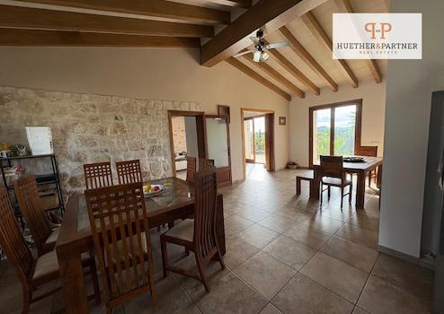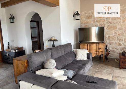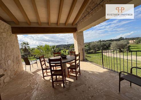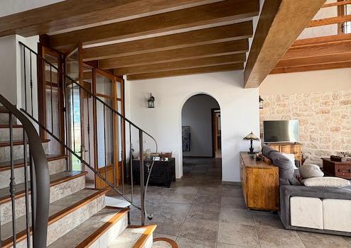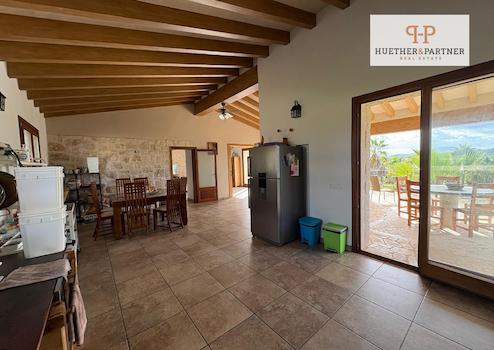 Das Haupthaus wurde vor rund zehn Jahren im Stil der traditionellen mallorquinischen Architektur erbaut und besticht durch seine Natursteinfassade, hohe Decken mit sichtbaren Holzbalken und helle, großzügige Wohnräume. Zwei elegante Schlafzimmer mit jeweils eigenem Bad en suite und privaten Terrassen bieten höchsten Wohnkomfort und exklusive Rückzugsorte.