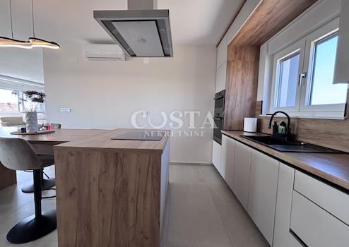 Zum Verkauf steht ein luxuriöses Penthouse in einem kleinen Wohngebäude in exzellenter Lage in Privlaka. Die Wohnung besticht durch ihre Großzügigkeit, hochwertige Ausstattung und moderne Raumaufteilung. Die 130 m² große Wohnfläche umfasst drei Schlafzimmer, von denen zwei über ein eigenes Bad verfügen, während das dritte Schlafzimmer einen privaten Balkon bietet. Insgesamt verfügt das Penthouse über drei Badezimmer. Wohnzimmer, Küche und Esszimmer bilden einen offenen Wohnbereich mit direktem Zugang zur Terrasse mit Whirlpool. Angrenzend an die Küche befindet sich ein praktischer Abstellraum. Zur Wohnung gehören außerdem zwei Parkplätze im Innenhof des Gebäudes. Die Gesamtnutzfläche inklusive aller Ausstattungsmerkmale beträgt 184,13 m² (KV 147,13 m²).