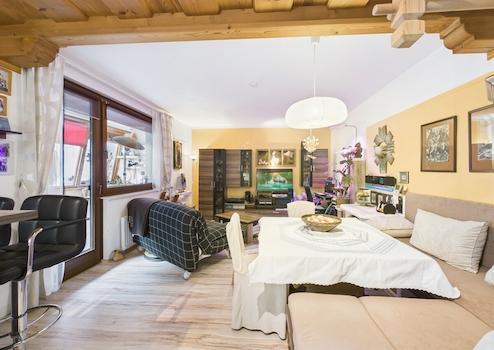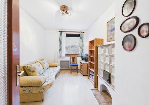 Die Einheit umfasst ein gemütliches Wohnzimmer, drei Schlafzimmer, eine separate Küche, ein Badezimmer sowie ein WC. Durch die Aufteilung eignet sich die Wohnung ideal als Hauptwohnsitz für eine Familie, als Rückzugsort für Naturliebhaber oder als großzügige Ferienimmobilie. Der Balkon lädt dazu ein, die Ruhe und die Bergluft zu genießen, während der zugehörige Kellerraum praktischen Stauraum für Sportgeräte, Vorräte oder saisonale Gegenstände bietet.