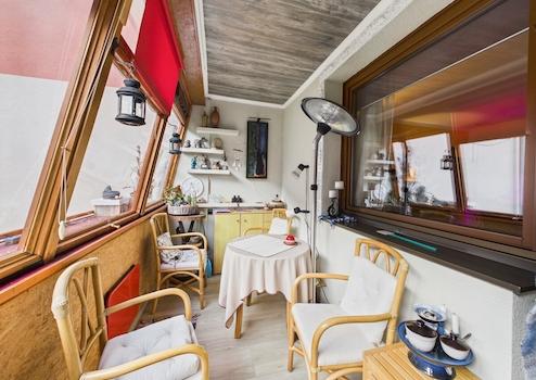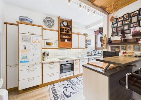 Ein besonderes Highlight ist das Heizsystem: Zwei Kachelöfen, die jeweils über zwei Räume verteilt sind, sorgen gemeinsam mit der Stromheizung für eine angenehme Wärme in der gesamten Wohnung und schaffen eine behagliche Wohnatmosphäre. Der Balkon erweitert den Wohnbereich ins Freie und bietet Platz zum Entspannen.