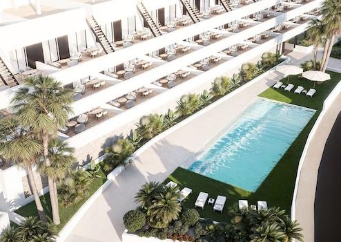 In dieser exklusiven Wohnanlage mit 3 Swimming Pool-Bereichen, Kinderspielplatz sowie Innen- und Außenfitnessstudio bieten wir 99 Apartments in erhöhter Lage mit Panoramablick auf Benidorm und das Mittelmeer.