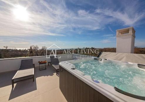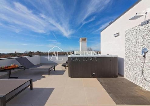 Zum Verkauf steht eine exklusive, modern eingerichtete Villa mit 250 m² Wohnfläche, gelegen in außergewöhnlicher Lage — nur 500 Meter von den ersten wunderschönen Stränden und 1,4 km vom Zentrum von Poreč entfernt. Die Villa befindet sich auf einem gepflegten Grundstück von 393 m² und bietet eine perfekte Kombination aus elegantem Design, Komfort und hoher Funktionalität.
