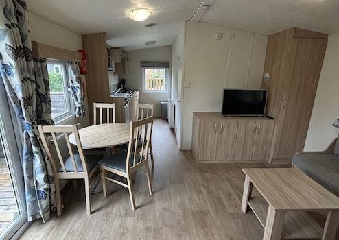 Schönes Chalet aus dem Jahr 2018. 2 Schlafzimmer und ein gemütliches Wohnzimmer (Foto zeigt ein ähnliches Chalet, das betreffende Chalet hat keine Holzterrasse, diese kann jedoch erworben werden).