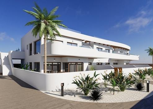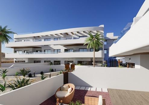 Entdecken Sie diese exklusiven Neubau-Apartments nur 1,5 km vom Strand in Los Alcázares entfernt. Die Apartments verfügen über zwei Schlafzimmer, zwei Badezimmer und praktische Einbauschränke. Sie haben die Wahl zwischen Wohnungen im Erdgeschoss mit eigenem Garten, Maisonette-Apartments mit Terrasse oder Penthäusern mit großzügiger Dachterrasse. Viele Wohnungen bieten zudem beeindruckende Ausblicke auf das Meer oder die nahegelegenen Golfplätze. Ein gemeinschaftlicher Swimmingpool und private Stellplätze innerhalb der Anlage sorgen für zusätzlichen Komfort und Entspannung.