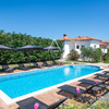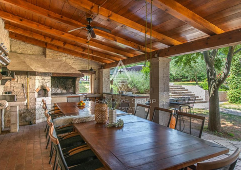 Der wunderschön angelegte Außenbereich umfasst einen einladenden Swimmingpool, Sonnenliegen, mediterrane Vegetation und viel Platz für Freizeit und Entspannung. Ein überdachter Sommerpavillon mit Steinkamin bietet den perfekten Rahmen für geselliges Beisammensein, Kochen im Freien und Genuss der bekannten istrischen Küche. Zwei zusätzliche Außenräume mit privaten Badezimmern erweitern die Möglichkeiten für Gäste oder touristische Vermietung.