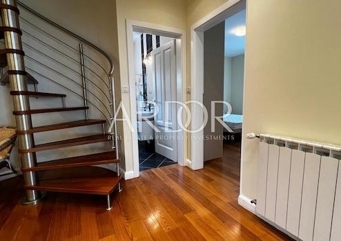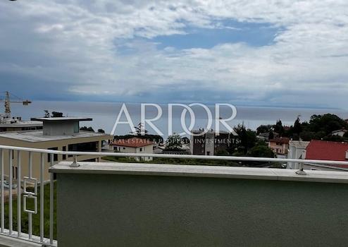 Nur wenige Gehminuten vom Meer entfernt steht dieser geräumige Penthouse-Wohnung zur langfristigen Miete zur Verfügung. Sie befindet sich im zweiten Stock eines Wohngebäudes in Ičići, mit einer Gesamtfläche von 137,58 m².