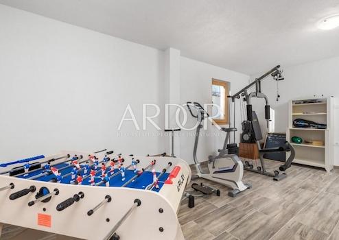HAUS mit 250 m2 und 600 m2 Garten im Herzen von Gorski kotar, neben Delnice, wo Sie sich wie im Wald fühlen! Dieses Haus besteht aus Holzformen, die von der geschickten Hand eines Experten sorgfältig zusammengebaut wurden! Das Haus wurde 2018 gebaut und hatte eine sehr erfolgreiche Karriere in der touristischen Vermietung. Diese hölzerne Bergoase mit komfortablem, warmem und intimem Interieur liegt in einem ruhigen kleinen Dorf mit herrlichem Blick auf die Berge von Gorski Kotar und das Kupska-Tal. Ein beheizter Whirlpool, eine überdachte Terrasse mit Blick auf die wunderschönen Berge und das Grün von Gorski Kotar werden jeden Reisenden einfach aufatmen lassen. Das Erdgeschoss verfügt über einen Fitnessraum, Gemeinschaftsräume, eine Taverne und ein Spielzimmer für Kinder und bietet alle Elemente für einen hedonistischen Urlaub in der Natur. Dieses Haus bietet mit seinen 4 Schlafzimmern und drei Badezimmern eine hervorragende, komfortable Unterkunft für 8 bis 12 Personen und ist ein ideales Anwesen für Familientreffen, größere Gruppen und Ferien in unberührter Natur und Stille.