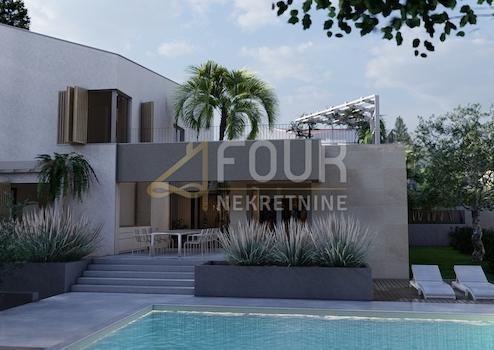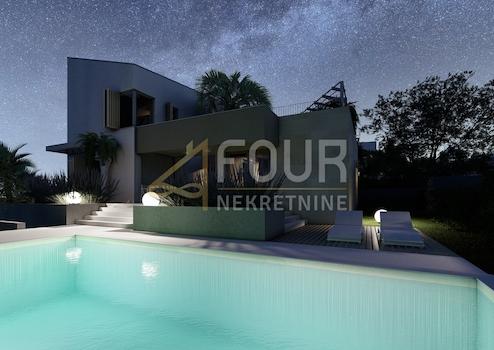 Zum Verkauf steht eine moderne freistehende Villa mit Pool und Meerblick in einem luxuriösen Resort auf der Insel Krk, nur einen Kilometer von der Küste entfernt. Dieser elegante Neubau, dessen Fertigstellung für das Jahr 2026 geplant ist, bietet insgesamt 206,17 m2 Wohnfläche, die sich auf Keller, Erdgeschoss und Obergeschoss verteilen, sowie geräumige Terrassen und einen gepflegten Garten, der zusätzlichen Wert und ein Gefühl von Privatsphäre bietet. Im Keller befinden sich ein Abstellraum, ein modern eingerichteter Fitnessraum sowie ein Badezimmer und eine zusätzliche Toilette, was diesen Teil praktisch und ideal für Wellness- oder Hobbyaktivitäten macht. Das Erdgeschoss ist als heller und offener Wohnbereich gestaltet, der Küche, Esszimmer und Wohnzimmer verbindet, und auf der gleichen Ebene befinden sich zwei komfortable Schlafzimmer, jeweils mit eigenem Badezimmer. Im Obergeschoss gibt es zwei weitere geräumige Schlafzimmer mit eigenen Badezimmern und Zugang zu einer großen Terrasse mit Blick auf das Meer und das Grün des Resorts. Die Villa ist mit Daikin-Klimaanlagen, Fußbodenheizung und hochwertigen Aluminiumfenstern ausgestattet, während sich im Garten ein beheizter Privatpool mit einer Fläche von 32 m2 befindet. Im Resort stehen Tennis-, Fußball- und Basketballplätze sowie ein Spielplatz für Kinder zur Verfügung, was dieses Projekt zu einer perfekten Kombination aus Luxus, Komfort und Freizeit macht. Sehr geehrte Kunden, die Agenturprovision wird gemäß den Allgemeinen Geschäftsbedingungen berechnet.