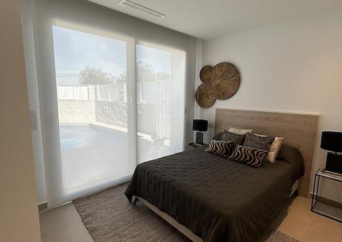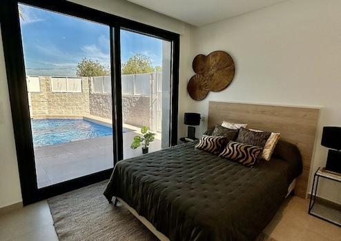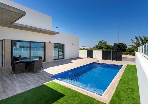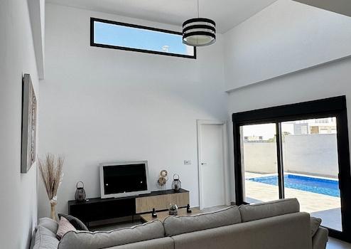 Diese attraktive Doppelhaushälfte in Daya Nueva vereint mediterranes Lebensgefühl mit modernem Wohnkomfort und traditionellem spanischen Charme. Die Villa verfügt über drei geräumige Schlafzimmer, zwei stilvoll ausgestattete Badezimmer sowie praktische Einbauschränke, die für zusätzlichen Stauraum und Ordnung sorgen. Ein privater Swimmingpool lädt zu entspannten Stunden unter der spanischen Sonne ein, während der eigene Stellplatz auf dem Grundstück Komfort und Sicherheit für Ihr Fahrzeug bietet.