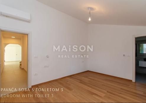 Zum Verkauf steht eine elegante Villa mit 400 m² Wohnfläche auf einem großzügigen Grundstück von m², gelegen in einer ruhigen Wohngegend der Gemeinde Vrsar – nur wenige Minuten vom Zentrum und dem faszinierenden Lim-Fjord entfernt. Die Immobilie wurde 2024 vollständig renoviert und überzeugt durch hochwertige Materialien, exzellente Verarbeitung sowie eine stilvolle Kombination aus Stein, Holz und modernen Elementen.