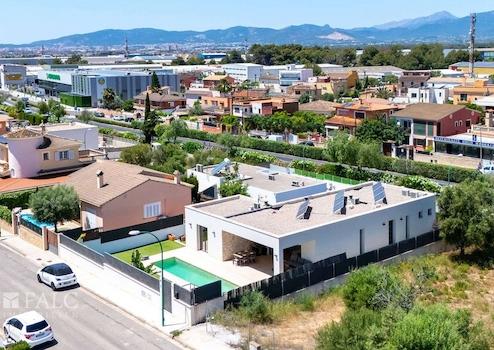 Nur wenige Minuten von Palmas Zentrum entfernt, präsentieren wir Ihnen diese moderne Neubau-Villa in Marratxí. Auf einem ca. 600 m2 grossen Grundstück mit einem privaten Pool von ca. 22 m2 wurde diese lichtdurchflutete Immobilie 2021 gebaut. Die Räumlichkeiten verteilen sich bequem auf einer Wohnebene und die grossen Schiebefensterelemente schaffen eine nahtlose Verbindung zum Aussenbereich.
