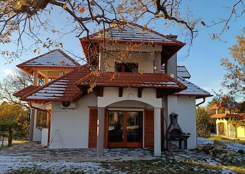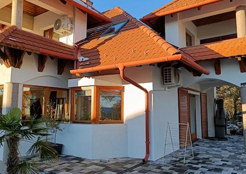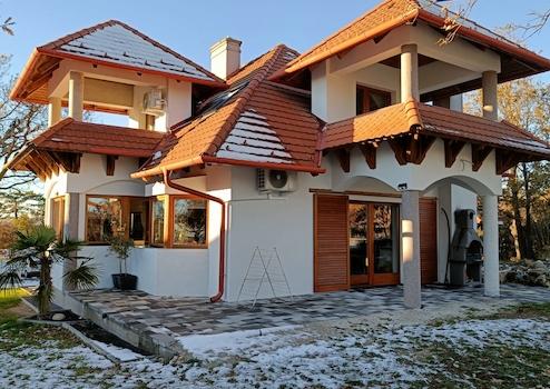 Zum Verkauf im Naturschutzgebiet Cserszegtomaj: Zweigeschossiges Einfamilienhaus auf einem 1500 m² großen Grundstück. Ca. 150 m² Wohnfläche im Erdgeschoss mit Terrasse, ca. 80–100 m² im Obergeschoss. Wohnzimmer mit offener Küche, 4 Schlafzimmer, 3 Badezimmer, Garage, 2 Flure, 2 Balkone, Terrasse. Zentralheizung mit Heizkessel, zusätzlich 4 Klimaanlagen (Heizung/Kühlung). 10 cm Dämmung in der 40 mm dicken Porotherm-Ziegelwand. Das Haus war beim Kauf im Jahr 2022 bereits baulich fertiggestellt. Seitdem wurde es kontinuierlich ausgebaut. Praktisch alles ist neu: Wasserenthärtungsanlage, indirekter Speicher, Elektroboiler. Drehstromanschluss (3 x 20 A). Panoramablick auf den Balaton vom Hof, der Terrasse und dem Balkon. Im Hof blühen Hyazinthen und Anemonen.