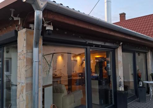 Az ingatlan, motoros kapuval, kamerával és riasztóval is fel van szerelve, továbbá száloptikás internet is elérhető.