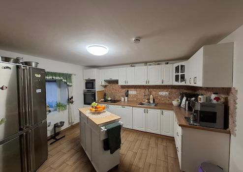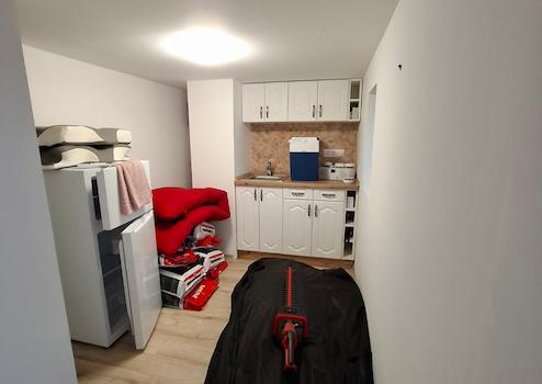 Die 15 m² große Wohnung mit separatem Eingang ist aus Ziegeln gebaut und ebenfalls mit einer 8 cm starken Isolierung versehen. Räume: Zimmer, Küche, Badezimmer (Dusche, Waschbecken, Toilette) separater kleiner Raum.