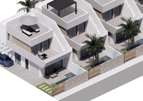 NEUBAU VILLEN IN SAN JAVIER~~Neubauprojekt von freistehenden Villen in San Javier.~~Die Neubauvillen verteilen sich auf zwei Etagen plus die geräumige Dachterrasse mit schönem Blick auf die Umgebung.~~Im Erdgeschoss befindet sich ein helles Wohnzimmer mit offener Küche und Zugang zur Terrasse, ein Doppelschlafzimmer mit Einbauschrank und ein Badezimmer.~Im ersten Stock befinden sich 2 geräumige Schlafzimmer, eines mit Einbauschrank und das andere mit Ankleidezimmer und Bad en suite. ~Privater Garten mit Pool und Parkplatz.~~~San Javier liegt in der Nähe aller Annehmlichkeiten mit einfachem Zugang zum Strand, Wassersport, Geschäften und dem Verkehrsnetz.~~Hier können Sie alle Annehmlichkeiten genießen, die San Javier zu bieten hat, wie z.B. die örtlichen Geschäfte, Bars und Restaurants sowie die Nähe zu Einkaufszentren, dem Flughafen von Murcia und all den schönen Orten, die man am Mar Menor finden kann.~~Der Flughafen Corvera/Murcia ist 30 Minuten und der Flughafen Alicante 45 Minuten entfernt.~~