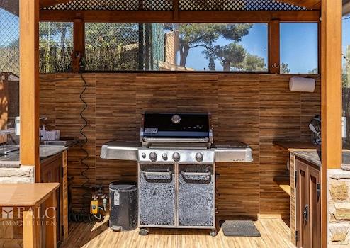 Diese schöne Villa in El Toro befindet sich in einer ruhigen Wohnlage, nur unweit vom luxuriösen Yachthafen Port Adriano und vom schönen Sandstrand der Playa El Toro entfernt, und bietet die perfekte Balance zwischen mediterranem Charme und Komfort. Die sonnige Immobilie mit einer Wohnfläche von ca. 287 m2 verfügt über 5 Schlafzimmer, 6 Badezimmer und wurde mit hochwertigen Materialien gestaltet und mit allen modernen Annehmlichkeiten ausgestattet. Die Villa verfügt über eine geräumige, voll ausgestattete Hauptküche und eine Sommerküche mit Grillbereich, ideal für Zusammenkünfte und Mahlzeiten im Freien. Der grosszügige Aussenbereich überzeugt mit einem Pool und mit ca. 150 m2 Terrassenflächen. Hier kann man die mediterrane Atmosphäre in vollen Zügen geniessen.