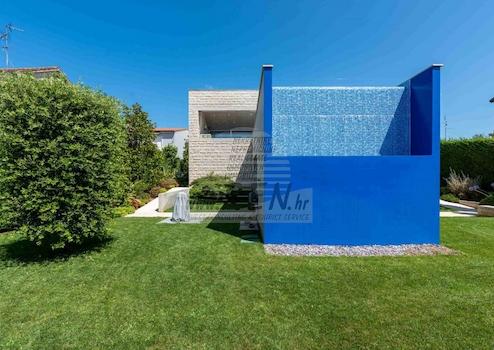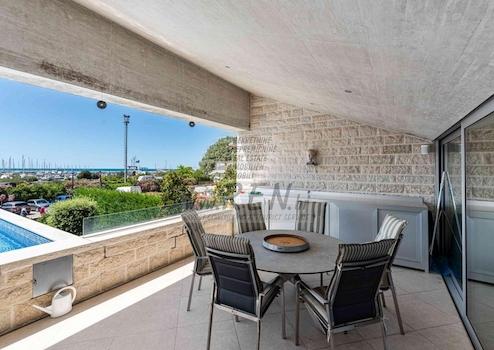 Im Zentrum von Umag, direkt neben der ACI Marina und praktisch in erster Reihe zum Meer, befindet sich diese außergewöhnliche moderne Steinvilla, die erstklassiges Design, Luxus und einzigartige Architektur vereint. Obwohl sie nicht direkt an einem Badestrand liegt, bietet die Villa einen prestigeträchtigen Lebensstil in der exklusivsten Lage der Stadt, mit traumhaftem Meerblick und absoluter Privatsphäre.