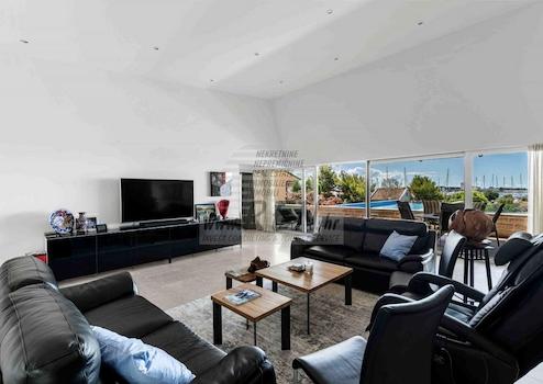 Die Villa verfügt über 500 m² Wohnfläche auf einem gepflegten Grundstück von 637 m² und beeindruckt mit einem einzigartigen 50-m²-Pool, der direkt vom ersten Stock aus zugänglich ist – ein unverwechselbares architektonisches Highlight.