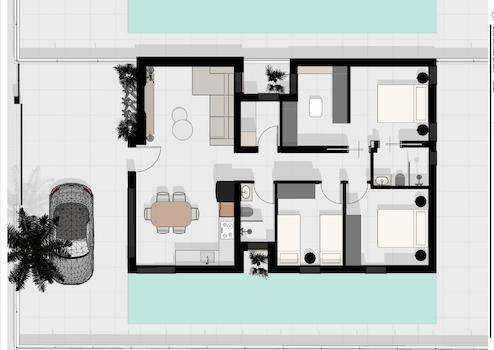 Moderne freistehende Villen in Monteazul Benijofar mit optionalem Pool und Solarium~~Erstklassige Lage zwischen Benijofar und Ciudad Quesada~Diese modernen freistehenden Villen befinden sich in der begehrten Urbanisation Monteazul, einer ruhigen Wohngegend zwischen Benijofar und Ciudad Quesada. Die Nachbarschaft bietet eine ausgezeichnete Balance zwischen Komfort, Ruhe und Bequemlichkeit, mit Bars, Restaurants, Supermärkten und wichtigen Dienstleistungen des täglichen Bedarfs nur wenige Gehminuten entfernt. Die schönen Strände von Guardamar del Segura sind etwa 9 km von der Anlage entfernt, während der internationale Flughafen Alicante etwa 38 km entfernt liegt. Golfbegeisterte können den Golfplatz La Marquesa in nur 5 km Entfernung und den Golfplatz Vistabella in 14 km Entfernung genießen. Der Yachthafen von Torrevieja liegt etwa 14 km von den Villen entfernt.~~Stilvolles Wohnen auf einer Ebene~Jede Villa ist durchdacht auf einer Etage angelegt und bietet eine praktische und komfortable Aufteilung, die sich sowohl für den Urlaub als auch für das ganze Jahr eignet. Die Häuser verfügen über 3 Schlafzimmer und 2 Badezimmer, darunter ein Hauptschlafzimmer mit eigenem Bad und einem geräumigen begehbaren Kleiderschrank. Ein separater Waschraum und ein privater Parkplatz auf dem Grundstück sorgen für zusätzlichen Komfort.~~Hochwertige Innenausstattung und moderne Ausstattung~Die Villen verfügen über ausgestattete Badezimmer mit Möbeln, Spiegel und Duschwand. Zu den weiteren Ausstattungsmerkmalen gehören eine Vorinstallation für eine Klimaanlage, voll ausgestattete Küchen und motorisierte Rollläden in allen Schlafzimmern, die Komfort und moderne Funktionalität in jedem Raum gewährleisten.~~Optionaler privater Pool und Solarium~Käufer haben die Möglichkeit, gegen Aufpreis einen privaten Swimmingpool oder ein Solarium auf dem Dach hinzuzufügen, wodurch Sie Ihren Außenbereich individuell gestalten und Ihren mediterranen Lebensstil verbessern können.~~Hervorragende Anbindung und ruhige Umgebung~Die Villen liegen in einer ruhigen neuen Wohngegend und bieten eine gute Anbindung an die Autobahn AP7, über die Sie schnell die nahe gelegenen Küstenstädte, Yachthäfen, Golfplätze und Einkaufsmöglichkeiten erreichen. Diese beneidenswerte Lage macht die Wohnanlage ideal für diejenigen, die einen entspannten Lebensstil in der Nähe von Einrichtungen im Landesinneren und Attraktionen an der Küste suchen.~~Kontaktieren Sie uns noch heute, um einen Besichtigungstermin zu vereinbaren und sich Ihr neues Zuhause in Benijofar zu sichern.
