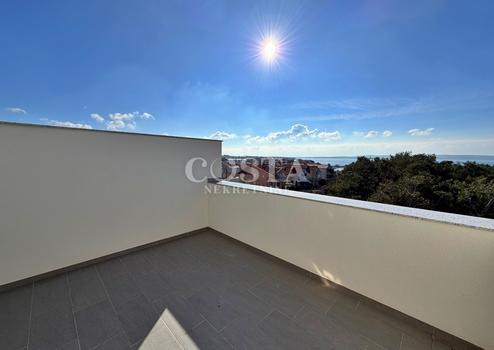 In Povljana auf der Insel Pag steht eine Maisonette-Wohnung in einem Neubau zum Verkauf. Die Wohnung mit einer Wohnfläche von 74,15 m² befindet sich im zweiten Obergeschoss eines Wohngebäudes mit 10 Wohneinheiten. Im zweiten Obergeschoss befinden sich ein Schlafzimmer, ein Badezimmer, ein Abstellraum und ein 14,40 m² großer Balkon. Über die Galerie gelangen Sie in ein geräumiges Wohnzimmer, eine Wohnküche und ein Treppenhaus. Zur Wohnung gehören außerdem ein 5,46 m² großer Abstellraum und ein Außenstellplatz. Die Gesamtnutzfläche der Wohnung inklusive aller Nebenkosten beträgt 106,01 m² (85,66 m² Nutzfläche).