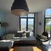 Das beeindruckende Apartment besticht durch moderne Architektur und bietet 97 m² Wohnfläche, verteilt auf zwei Ebenen. Trotz der erhöhten Lage mit fantastischem Ausblick ist der Hauptwohnbereich bequem über das Erdgeschoss zugänglich. Der helle Wohn- und Essbereich verfügt über zwei große Schiebetüren zur Terrasse, einen Teil mit beeindruckender Raumhöhe sowie eine moderne offene Treppe, die den Blick durch das raumhohe Panorama-Fenster optimal zur Geltung bringt. Die gut ausgestattete Küche mit Frühstückstheke, zwei Doppelschlafzimmer und ein Familien-Duschbad runden diese Etage ab.