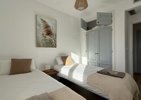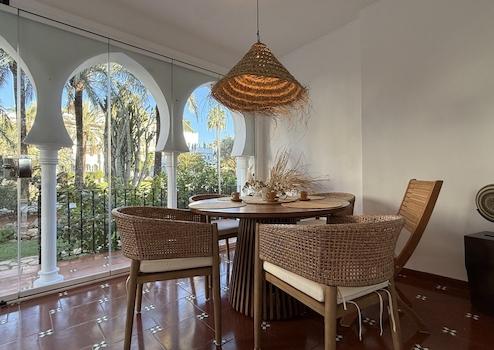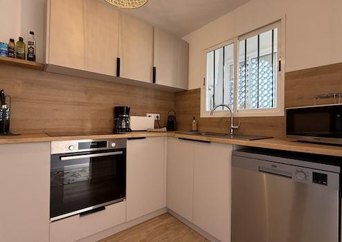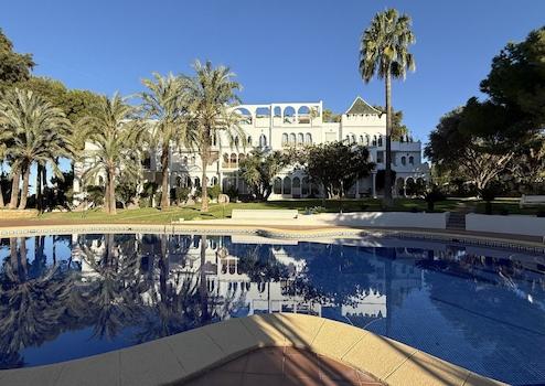 Dieses sonnige 2 Schlafzimmer Appartement (Baujahr ca. 1994) liegt in der wunderschönen beliebten Anlage "Al Khalif II" in Denia, nur 10 min zu Fuß von den Supermärkten Lidl/Consum. Die Wohnung befindet sich im Erdgeschoss und von der Terrasse haben Sie direkten Zugang und Blick auf die attraktive, mediterran angelegte Gartenanlage mit großem Gemeinschaftspool. Die Wohnung selbst hat ein Wohn-/Esszimmer, eine neuwertige Einbauküche mit allem Zubehör, 2 Schlafzimmern (beide verfügen über Deckenventilatoren) und ein innen liegendes Wannenbad. Die komplette Wohnung verfügt über eine Zentral-Klimaanlage warm/kalt. Auch ein privater Abstellraum steht Ihnen zur Verfügung mit Waschmaschine und Trockner. Die überdachte Terrasse bietet Platz für Tisch und Stühle, und verfügt auch über einen Deckenventilator. Für Ihr Fahrzeug können Sie die Stellplätze der Gemeinschaftsanlage nutzen; die Parkplätze haben keine Nummerierung, und sind frei zu parken.