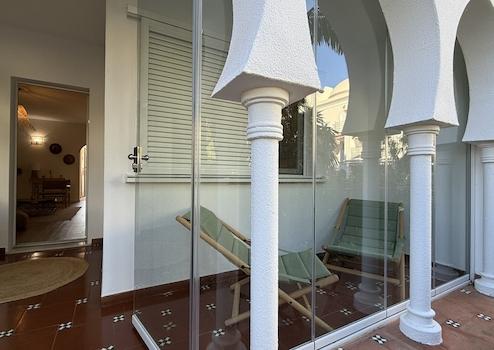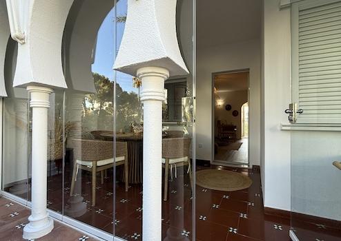 Sehr ruhig gelegene Gemeinschaftsanlage im Arabischen-Style in Denia, 2 km vom kilometerlangen Sandstrand entfernt, Restaurants und Supermärkte wie Lidl/Consum befinden sich in unmittelbarer Umgebung. Ins Zentrum von Denia sind es ca. 1 km. In Denia finden Sie viele Geschäfte, Flaniermeilen, Restaurants, ein großes Kultur-, Sport- und Freizeitangebot. Fährverbindungen nach Mallorca und Ibiza sind auch in Denia im Angebot. Zu den Golfplätzen in La Sella beträgt die Fahrtzeit ca. 10 Minuten. Die Flughäfen Alicante und Valencia sind ca. 1 Fahrtstunde entfernt.