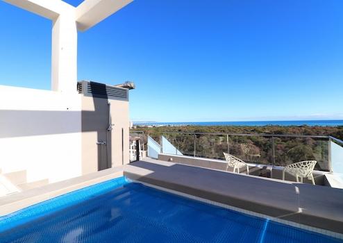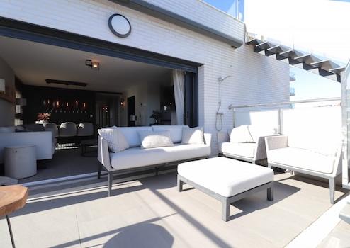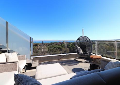 Dieses nach Osten ausgerichtete, luxuriöse Penthouse mit drei Schlafzimmern in Guardamar del Segura befindet sich in einer äußerst begehrten Lage - nur zehn Gehminuten von einem großen Supermarkt, fünfzehn Minuten vom Yachthafen und Strand sowie fünf Autominuten vom Stadtzentrum entfernt. Das 2018 erbaute Apartment mit 109 m² Wohnfläche präsentiert sich modern, elegant und lichtdurchflutet. Der Wohnbereich beeindruckt mit spektakulärem, unverbaubarem Blick über den Pinienwald und die Dünen bis hin zum Meer. Durch die raumhohen, vollständig in der Wand verschwindenden Schiebetüren verschmilzt der Innenraum harmonisch mit der großzügigen Terrasse und dem stilvollen Chill-out-Bereich, der sich ideal zum Entspannen inmitten dieser traumhaften Kulisse eignet.