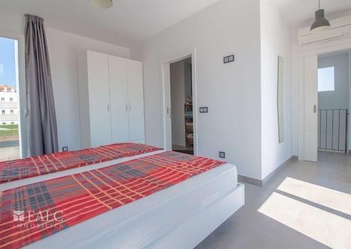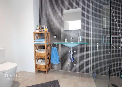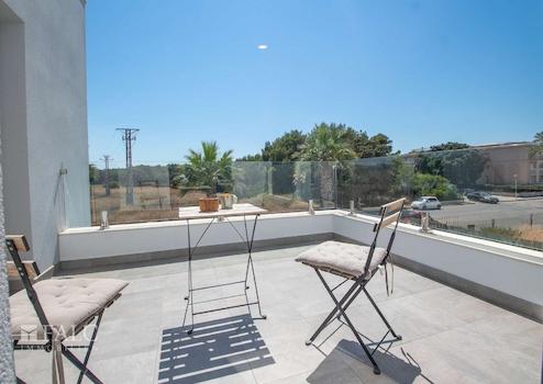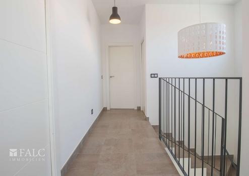 Über eine moderne Treppe gelangen Sie in den oberen Bereich, der drei weitere Schlafzimmer umfasst, von denen eines über ein Bad en suite und einen eigenen Balkon verfügt. Den restlichen Schlafzimmern steht hier ein zweites Bad zur Verfügung.