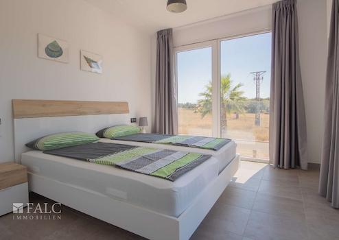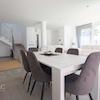 Helle Fußböden schaffen ein modernes, sommerliches Ambiente, während die geschmackvolle Einrichtung für die nötige Gemütlichkeit sorgt.