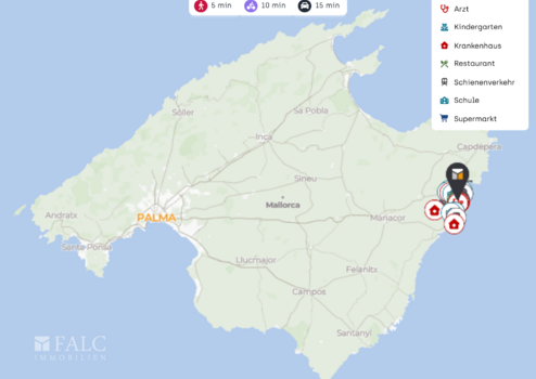 Auch die medizinische Versorgung ist gesichert, mit mehreren Ärzten und Kliniken in der Nähe, darunter das Hospital de Llevant.