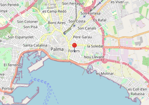 Die Wohnung liegt im Stadtteil Foners, einem sehr zentralen und gut angebundenen Quartier östlich der Altstadt von Palma. Die Zone kombiniert städtisches Leben, schnelle Wege zum Meer und eine komplette Infrastruktur direkt vor der Haustür.