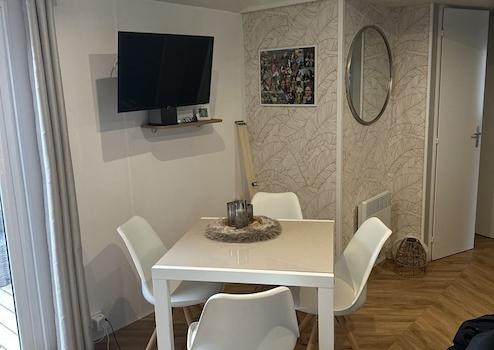 Treten Sie ein in eine Oase voller Komfort und Gemütlichkeit. Das Wohnzimmer bildet das Herzstück des Chalets: Ein großzügiges Sofa lädt zu entspannten Abenden ein, während der moderne Fernseher und das schnelle Internet für Unterhaltung und Verbindung sorgen.